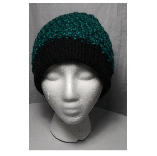 "Wave" Beanie - Blue/Green and Black (Average Size)