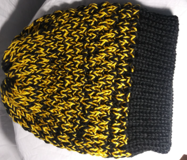 "Wave" Beanie - Black/Yellow with Black brim (Average Size)