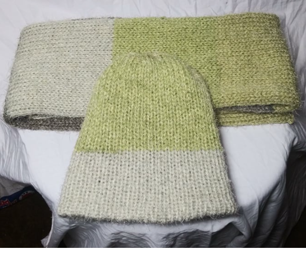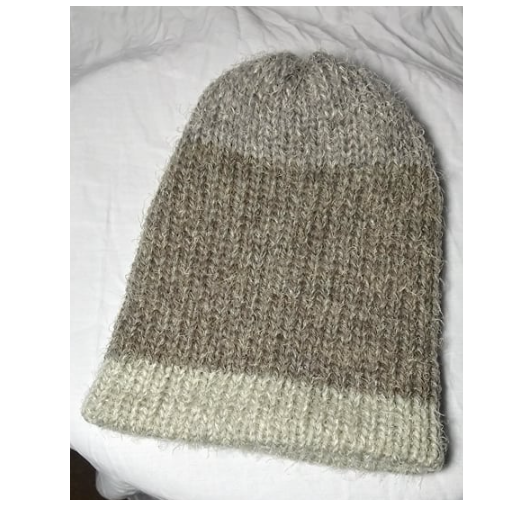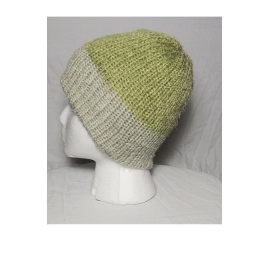 The hat for this set is considered reversible, as the natural striping of the yarn provides 2 separate color patterns for each side of the hat.